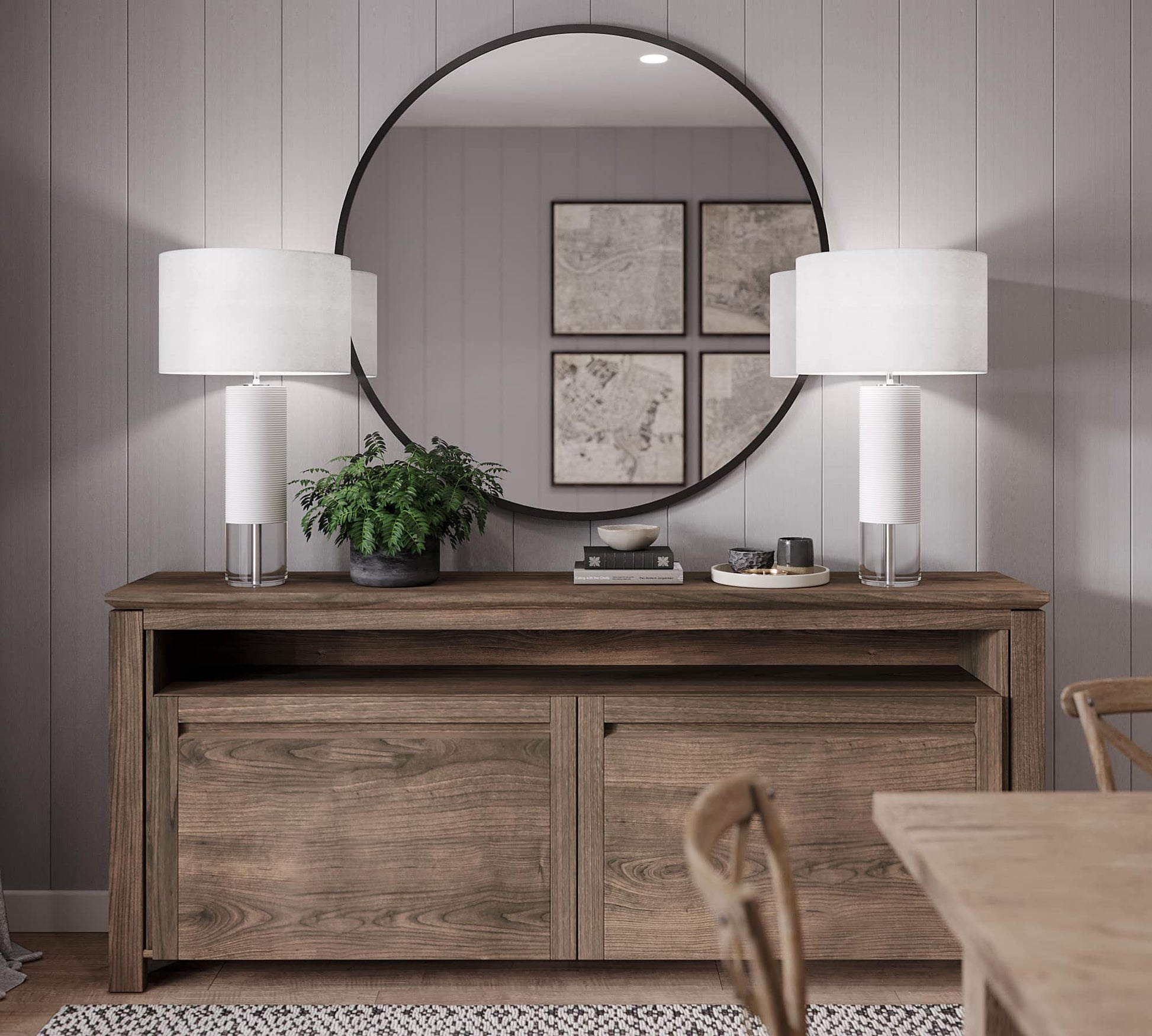 FINISH: resin, matte off-white finish and finely ribbed surface; crystal
