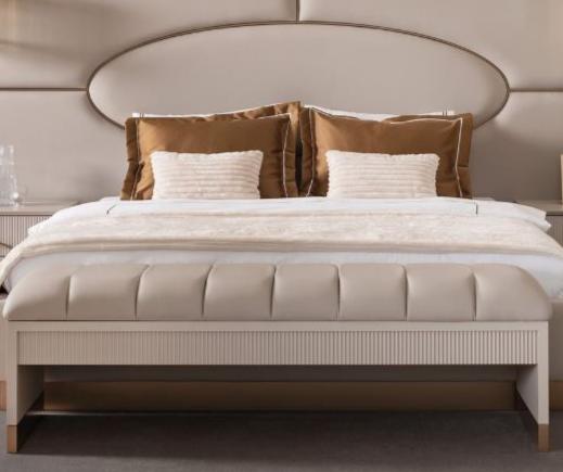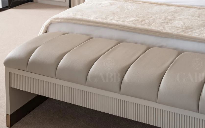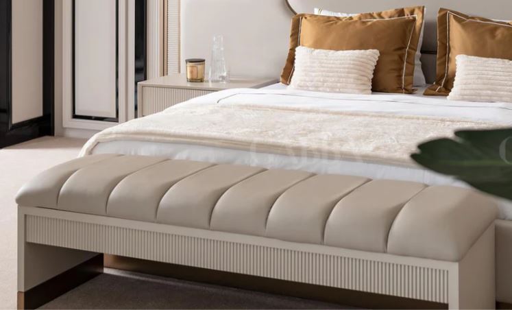 The Casto Bench offers a refined touch to any bedroom or living space. Upholstered in a sophisticated leather finish with elegant channel tufting, its sleek design and subtle metallic accents make it a versatile and luxurious addition.