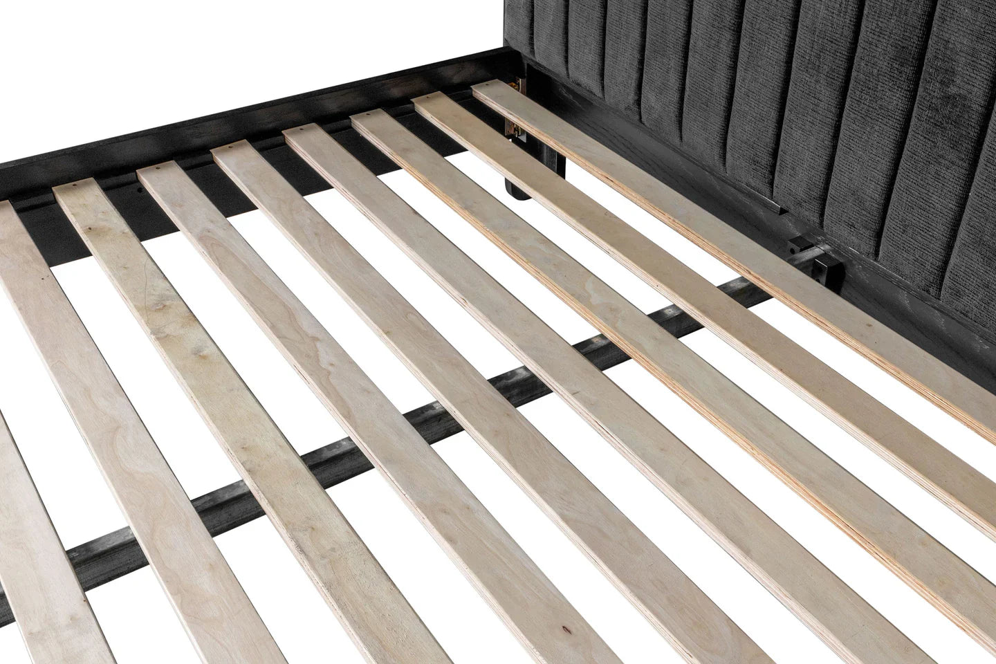 The Nori Bed features two styles in blackened and natural white oak to create the perfect marriage of simplicity and style. The black powder coated steel legs extend over the wood giving the bed a chic modern look. The full collection offers a night stand, bed, chest and dresser.