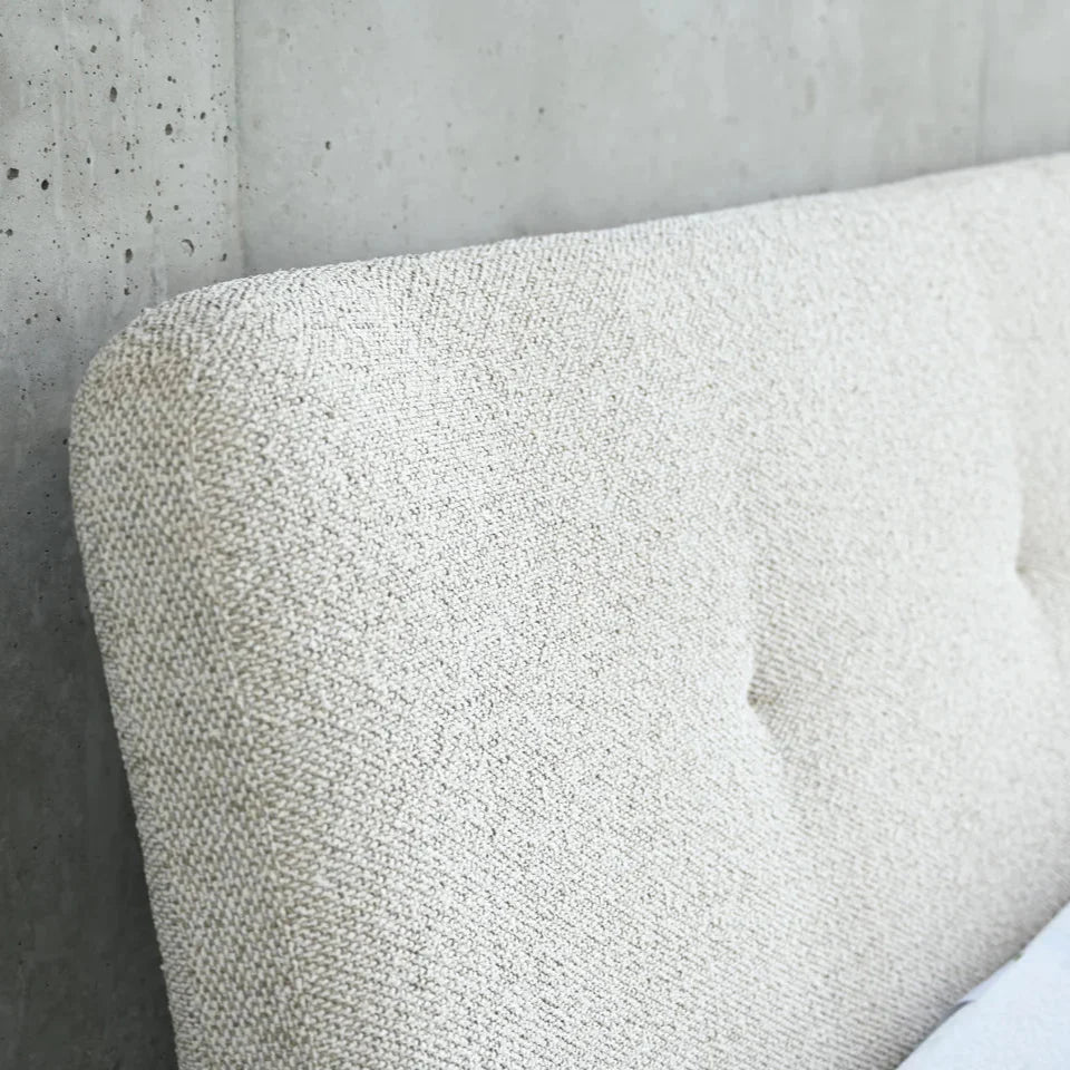 The Sensu Bed is designed with a luxurious nubbly fabric that provides both aesthetic appeal and comfort. Its unique color, Gellar Marble, adds a sophisticated touch to bedroom decor, making it a standout piece for contemporary interiors. This bed features a high angled headboard create a rich and luxurious feel.