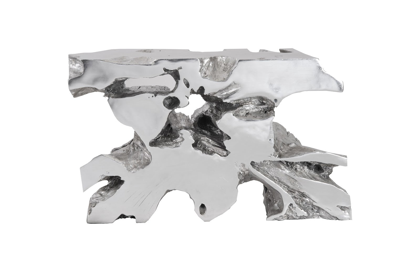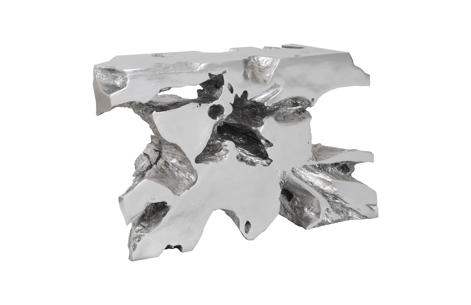 Chic piece of contemporary interiors made of composite in a luminous silver leaf finish.
