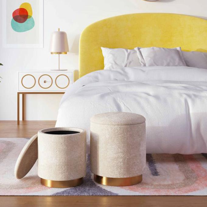 - Set includes two different sized ottomans
