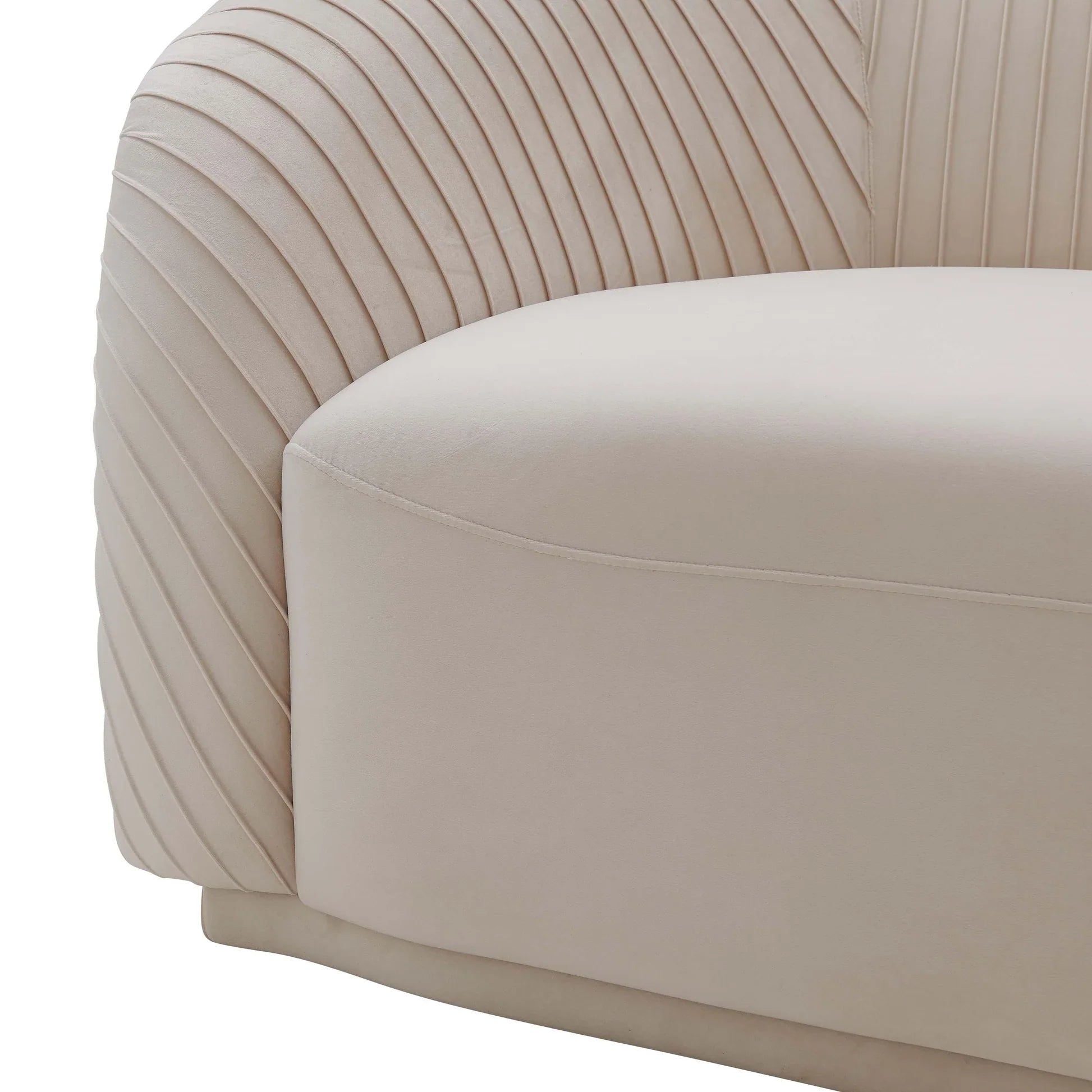 A perfect fusion of fashion and comfort, the Yara sofa is upholstered in plush velvet and features a pleated textured finish with rolled arms. This minimal and timeless sofa was designed so you can relax in style while still enjoying its luxurious look and feel.